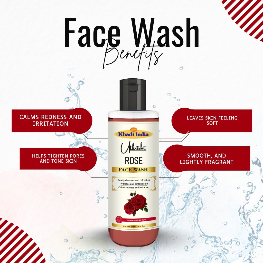 Utkrihst Khadi Rose Face Wash gently cleanses, soothes, and refreshes skin. Keeps skin soft, smooth, and radiant. Suitable for daily use on all skin types.