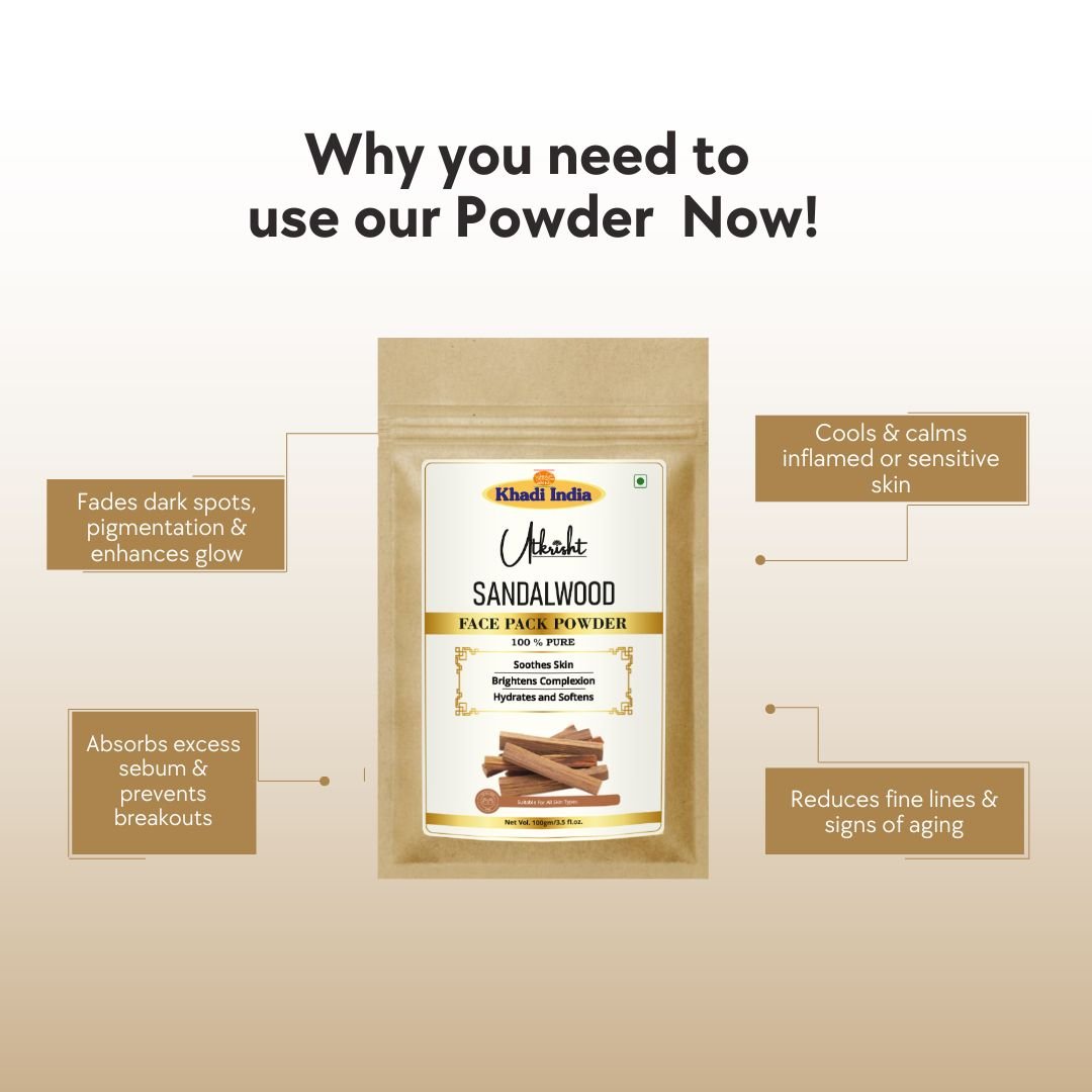 A natural Sandalwood Face Pack that brightens skin, removes tan, controls acne, tightens pores, and delivers a soothing glow for clear and radiant skin.
