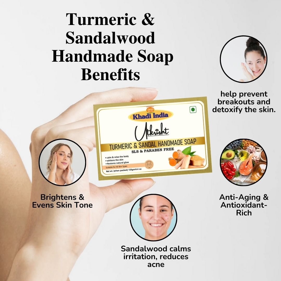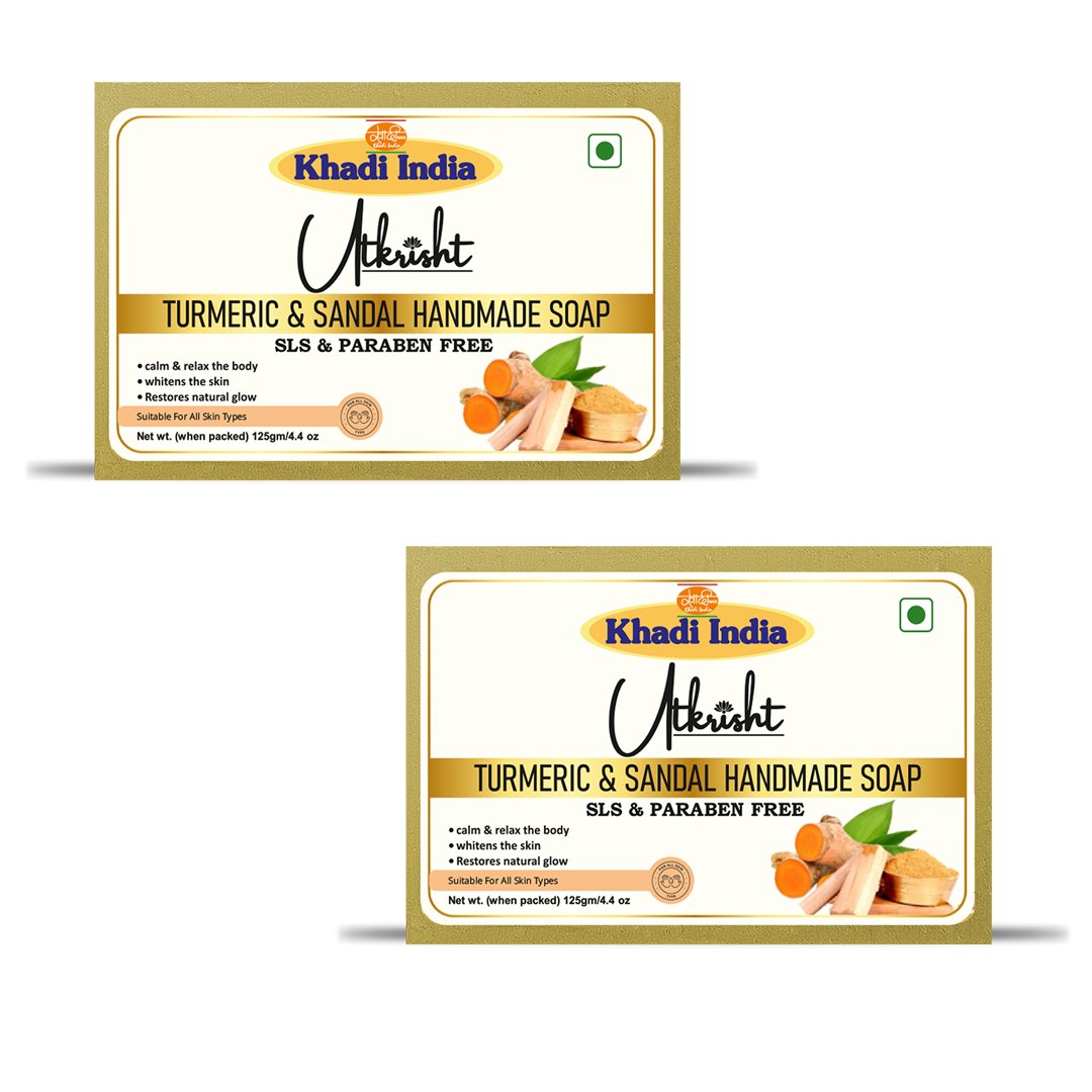Utkrisht Khadi Turmeric & Sandal Handmade Soap – Brightening, Anti-Blemish & Skin Nourishing Bath Bar – 125g (Pack of 2)