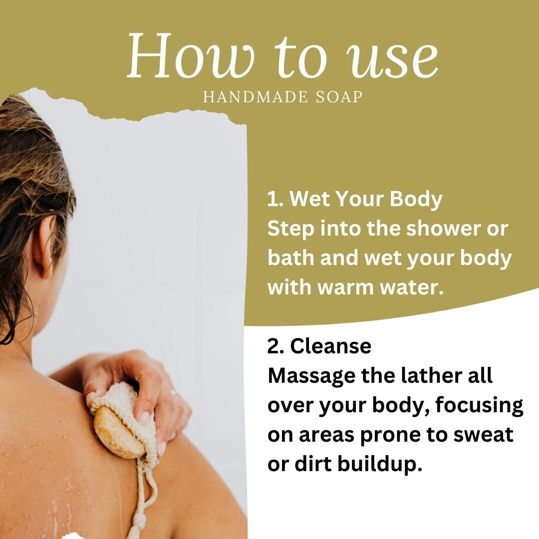 Rub the soap between your hands or on a wet loofah/washcloth to create a creamy lather. -