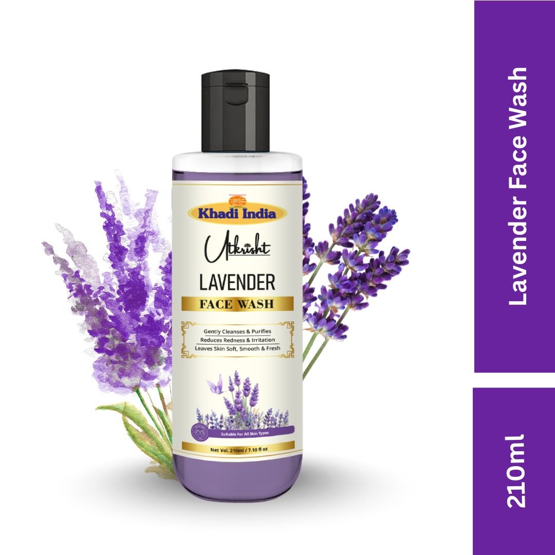 Utkrihst Khadi Lavender Face Wash is a mild, soothing cleanser designed to gently remove dirt, oil, and impurities while leaving the skin feeling fresh and balanced. Lavender is traditionally known for its calming properties, helping refresh tired skin and maintain a healthy-looking complexion.